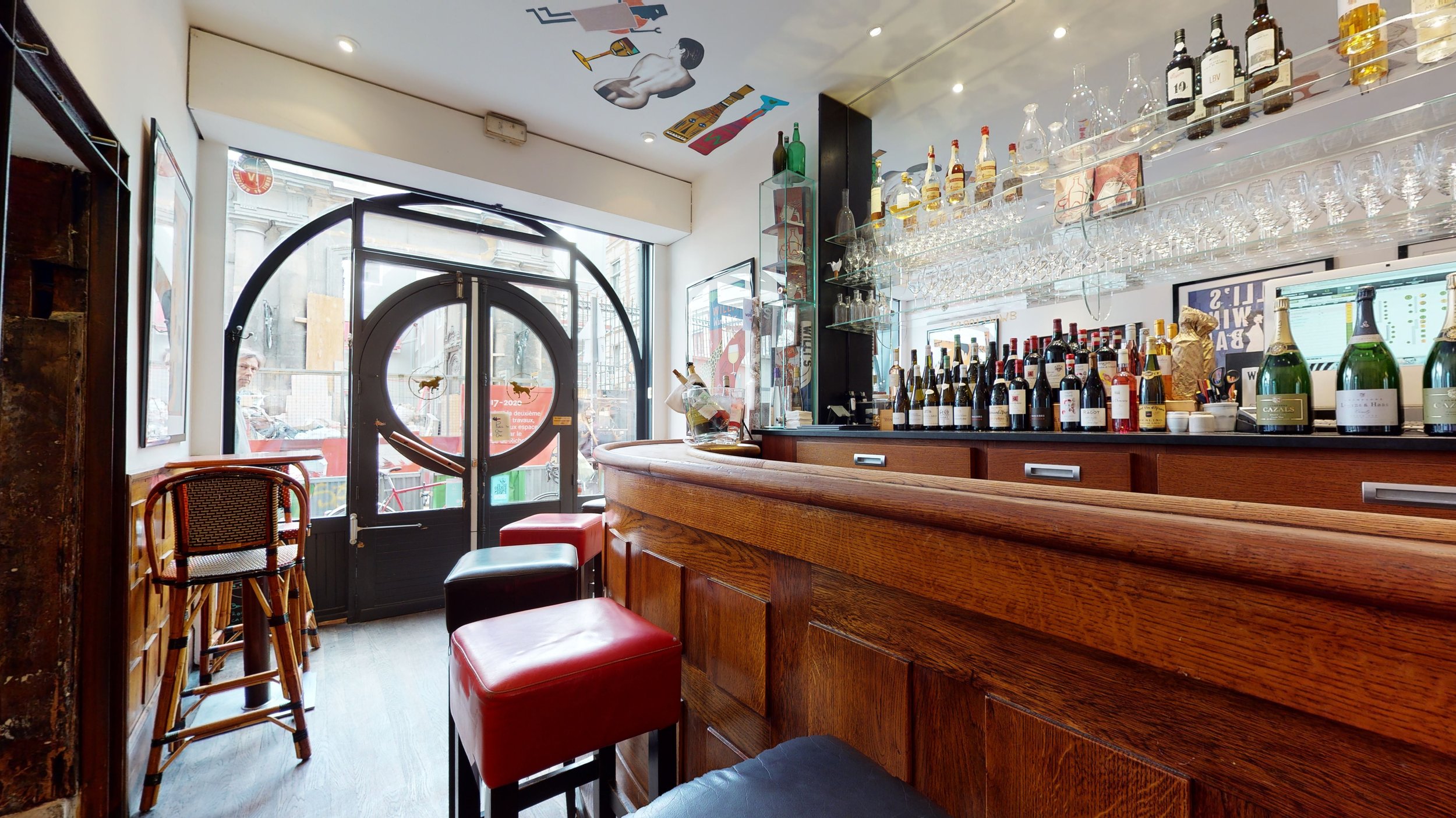 L’arrière comptoir, Willi’s Wine Bar, vue sur la rue de Beaujolais. credit Franck Joyeux